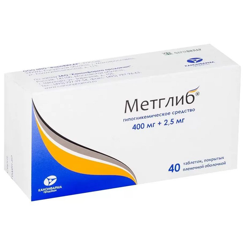 Метглиб 2,5 мг+400 мг таблетки 40 шт