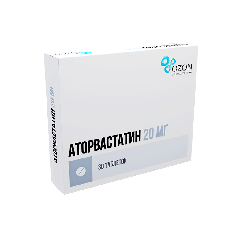 Аторвастатин 20 мг таблетки покрытые пленочной оболочкой 30 шт Озон