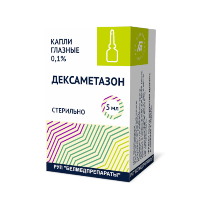 • Дексаметазон 0,1% капли глазные 5 мл