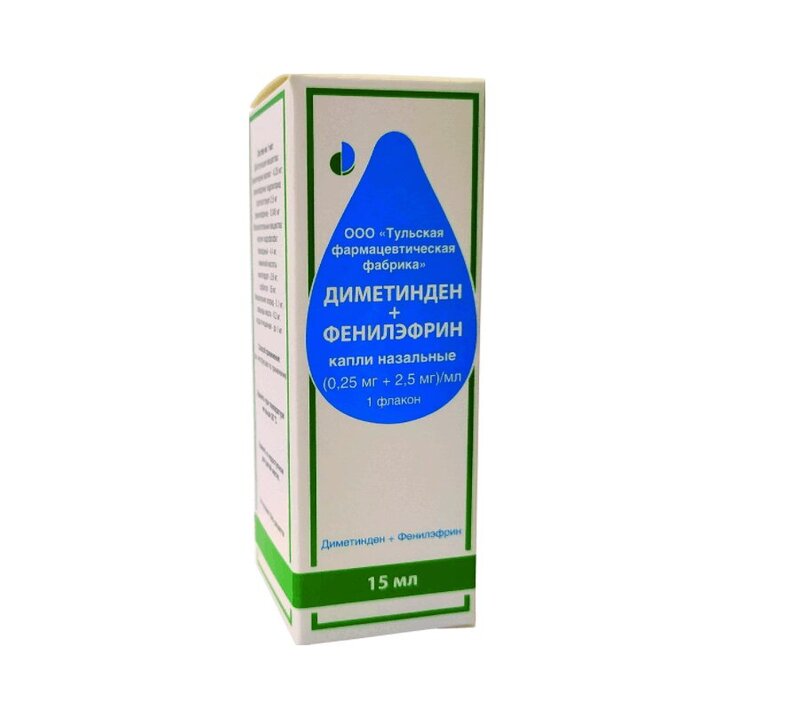 Инструкция по применению Диметинден + Фенилэфрин 0,25 мг/мл+2,5 мг/мл капли назальные 15 мл