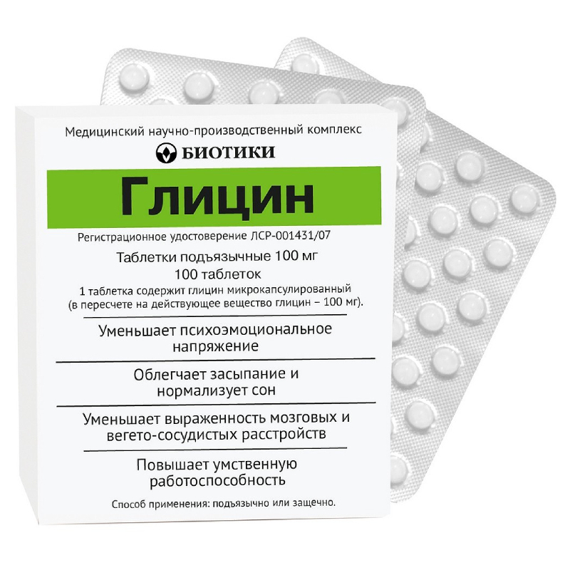 Глицин 100 мг таблетки подъязычные 100 шт
