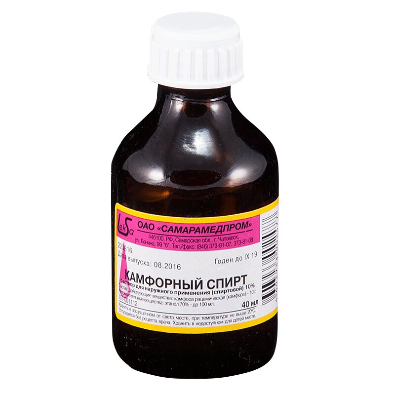 Инструкция по применению Камфорный спирт 10% раствор спиртовой для наружного применения 40 мл