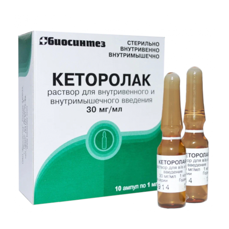 Кеторолак 30 мг/мл раствор для внутривенного и внутримышечного введения 1 мл 10 шт Биосинтез