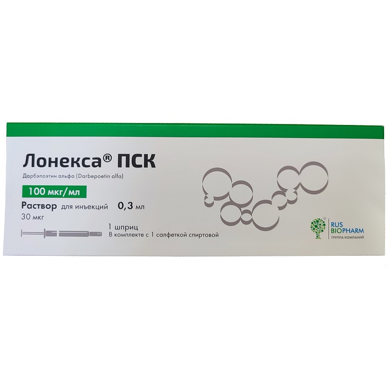 | дарбэпоэтин альфа (рекомбинантный) | 100 мкг | 30 мкг |