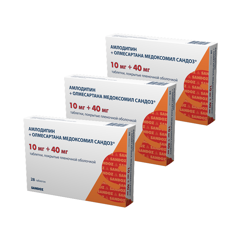 Набор 3Х Амлодипин+Олмесартана медоксомил Сандоз 10 мг+40 мг таблетки покрытые пленочной оболочкой 28 шт