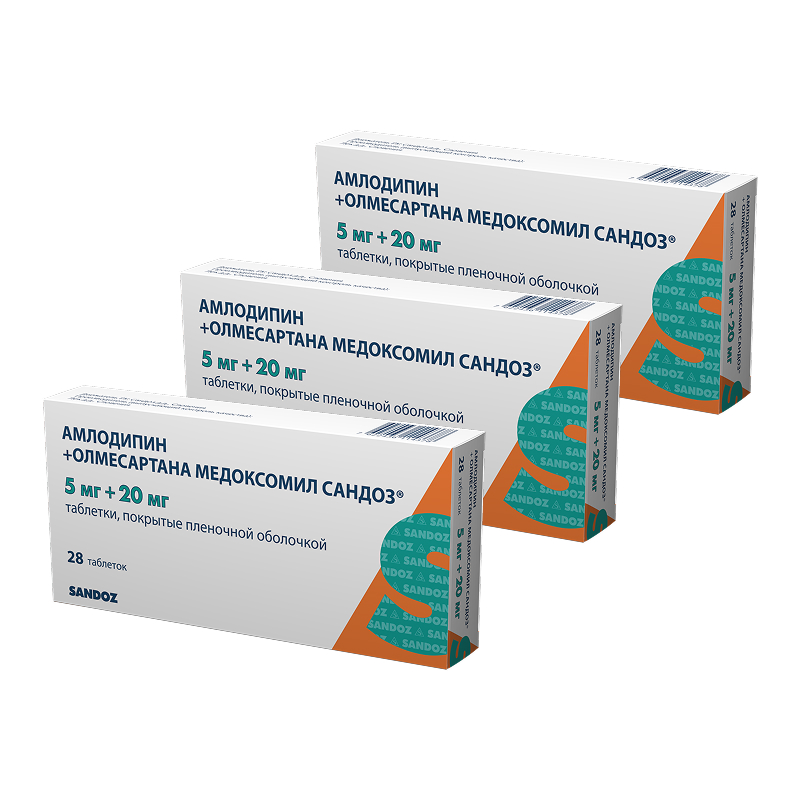 Набор 3Х Амлодипин+Олмесартана медоксомил Сандоз 5 мг+20 мг таблетки покрытые пленочной оболочкой 28 шт