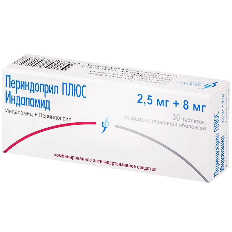 Инструкция по применению Периндоприл ПЛЮС Индапамид 2,5 мг+8 мг таблетки 30 шт