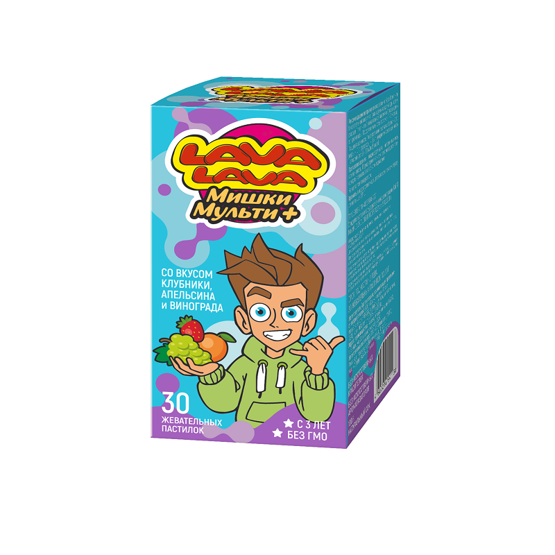 Глюкозный сироп, сахар, желатин, витаминный премикс (холин, L-аскорбиновая кислота, никотинамид, пиридоксина гидрохлорид, цианокобаламин, мальтодекстрин), докозагексаеновая кислота (ДГК, высокоолеиновое подсолнечное масло, антиокислители экстракт розмарина, токоферолы, аскорбилпальмитат), регулятор кислотности лимонная кислота, натуральный пищевой ароматизатор апельсиновый (вкусоароматические препараты, натуральные вкусоароматические вещества, антиокислитель бутилгидроксианизол), глазирующее вещество капол (растительное масло, глазирователи карнаубский воск, пчелиный воск, натуральный пищевой ароматизатор «Тутти-Фрутти»), натуральный пищевой ароматизатор тропический (натуральные вкусоароматические вещества, вкусоароматические препараты, носитель пропиленгликоль), краситель эмульсия сладкого перца (сахар, экстракт красного сладкого перца, эмульгатор эфиры глицерина, лимонной и жирных кислот, подсолнечное масло, антиокислитель DL-альфа-токоферол), вода.