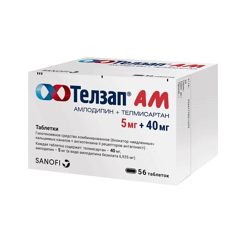 Препарат Телзап® AM содержит два гипотензивных вещества с взаимодополняющими механизмами действия, которые обеспечивают контроль показателей АД у пациентов с эссенциальной артериальной гипертензией; амлодипин принадлежит к фармакологической группе блокаторов медленных кальциевых каналов (БМКК), а телмисартан - к группе антагонистов рецепторов ангиотензина II (АРА II). Комбинация данных веществ проявляет аддитивный антигипертензивный эффект, вызывая более выраженное снижение АД, чем каждый из компонентов препарата по отдельности.