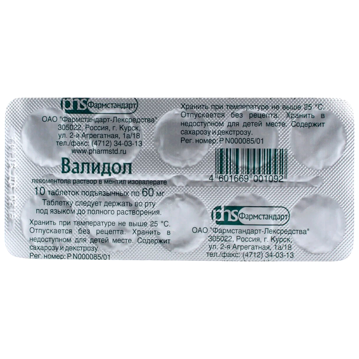 Инструкция по применению Валидол 60 мг таблетки подъязычные 10 шт
