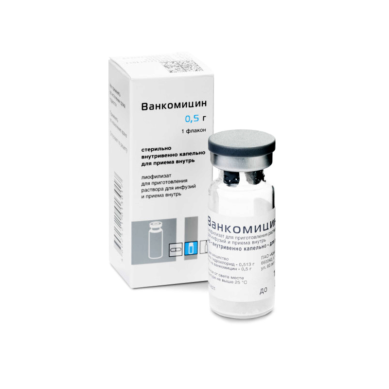 Ванкомицин 0,5 г лиофилизат для приготовления раствора для инфузий и приема внутрь 1 шт