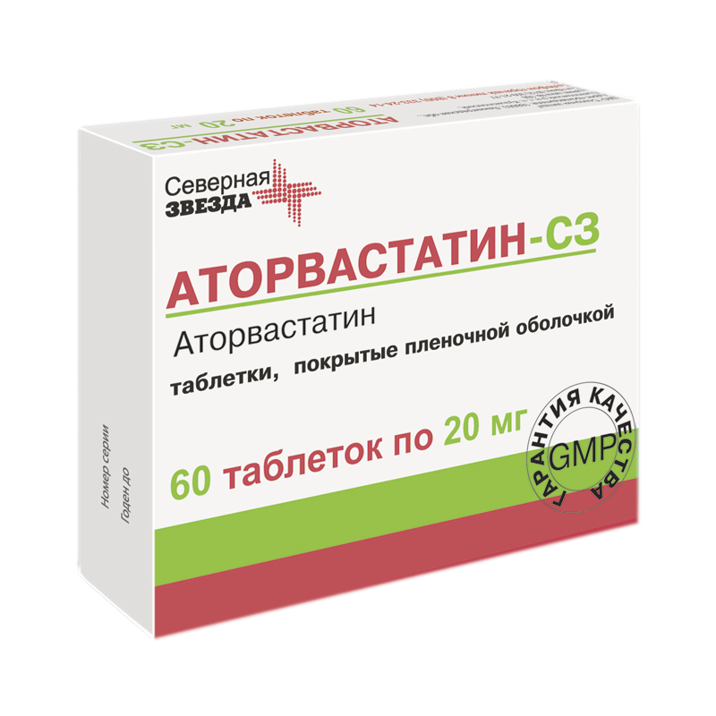 Аторвастатин-СЗ 20 мг таблетки покрытые пленочной оболочкой 60 шт