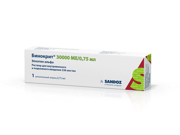Бинокрит 30000 МЕ/0,75 мл раствор для внутривенного и подкожного введения шприц 0,75 мл 1 шт