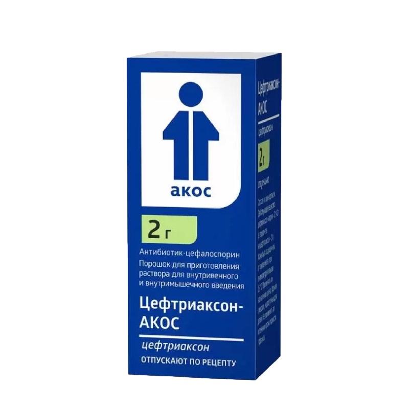 Цефтриаксон-АКОС 2 г порошок для приготовления раствора для внутривенного и внутримышечного введения 1 шт