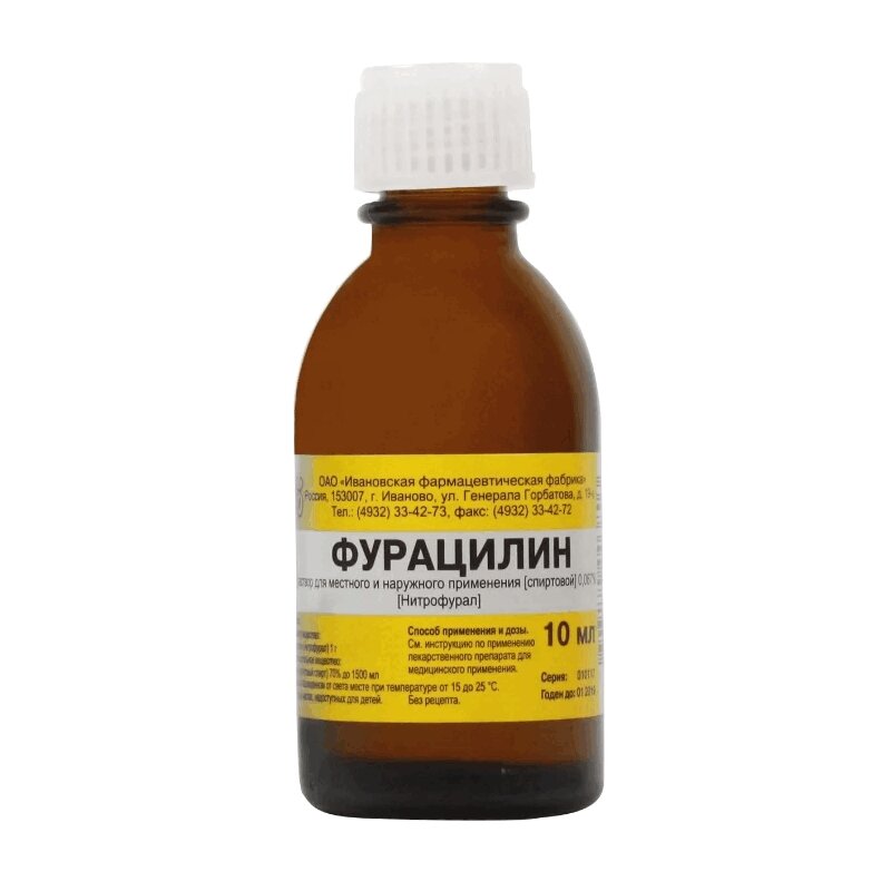 Фурацилин раствор для местного и наружного применения 10 мл 1 шт Ивановская фармацевтическая фабрика