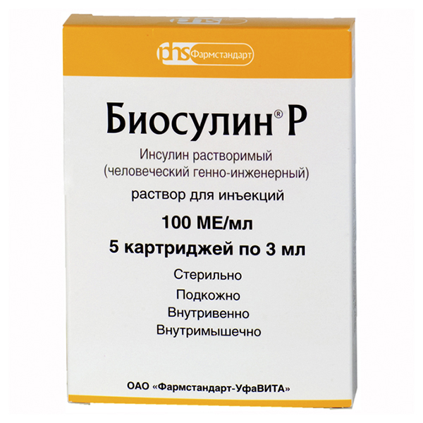 Инструкция по применению Биосулин Р 100 МЕ/мл раствор для инъекций картридж 3 мл 5 шт