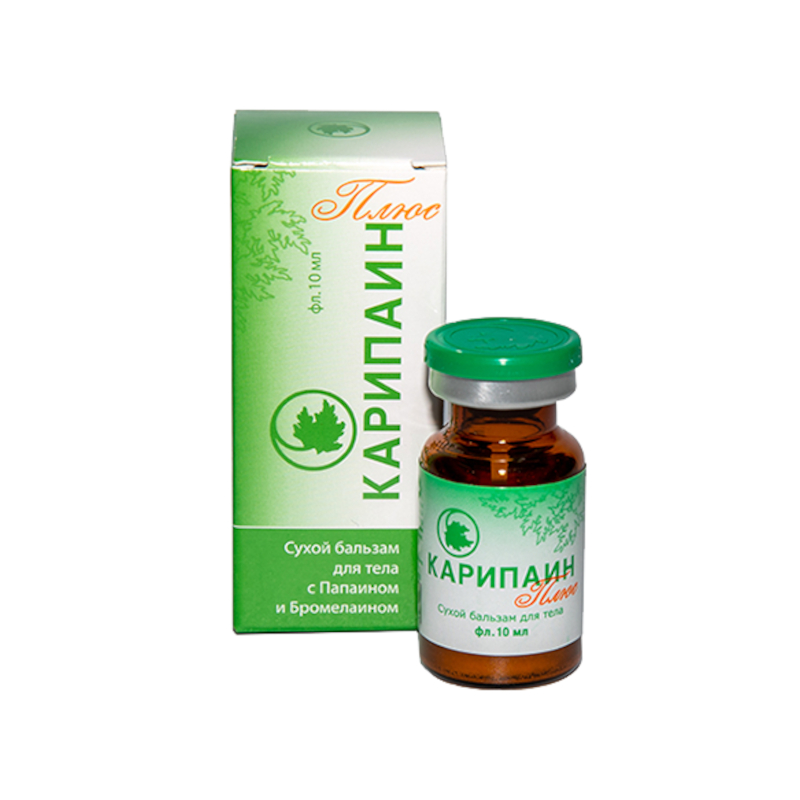 Показания:Сухой бальзам «Карипаин» для тела, в состав которого входят растительные протеолитические ферменты, содержащиеся в млечном соке плодов папайи (дынного дерева), способствует отшелушиванию ороговевших клеток и регенерации новых, тем самым восстанавливая структуру кожи. Бальзам рекомендуется применять для смягчения рогового слоя эпидермиса и рубцов, улучшения эстетического вида. Катализирует гидролиз нежизнеспособных белков, пептидов, амидов, эфиров и тиоэфи-ров. Бальзам имеет сбалансированный состав активных действующих веществ, что делает его применение эффективным.Противопоказания:Индивидуальная непереносимость отдельных компонентов.Способ применения и дозы:Сухой бальзам растворить во флаконе водой t 25°-37°С объемом 9-10 мл. Раствор нанести на кожу тела массирующими движениями до полного впитывания. Допускается наличие на дне флакона небольшого количества осадка нерастворенных нейтральных буферных веществ. Применяют один раз в день. Длительность применения от 20 до 30 дней. При необходимости - делают повторные курсы. Перерыв между повторным применением не менее 30 дней.