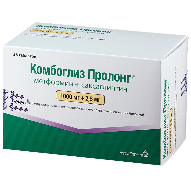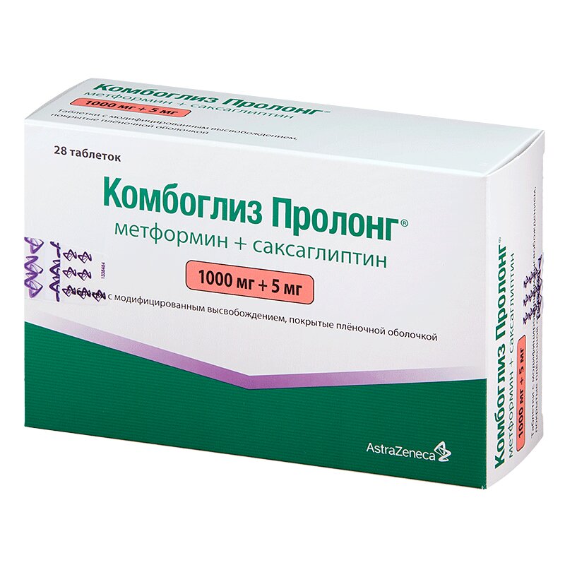 Цены на Комбоглиз Пролонг 1000 мг+5 мг таблетки с модифицированным высвобождением 28 шт в аптеках Санкт-Петербурга