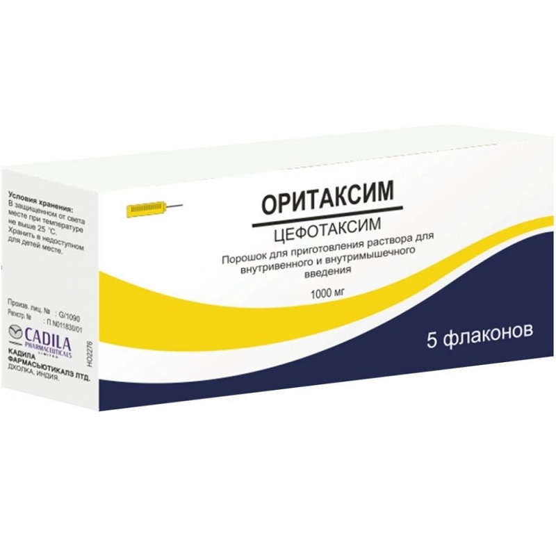 Оритаксим 1000 мг порошок для приготовления раствора для внутривенного и внутримышечного введения 5 шт