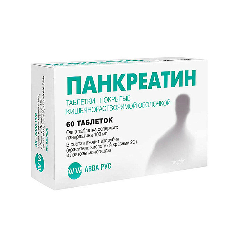 Панкреатин 100 мг таблетки кишечнорастворимые покрытые пленочной оболочкой 60 шт АВВА РУС