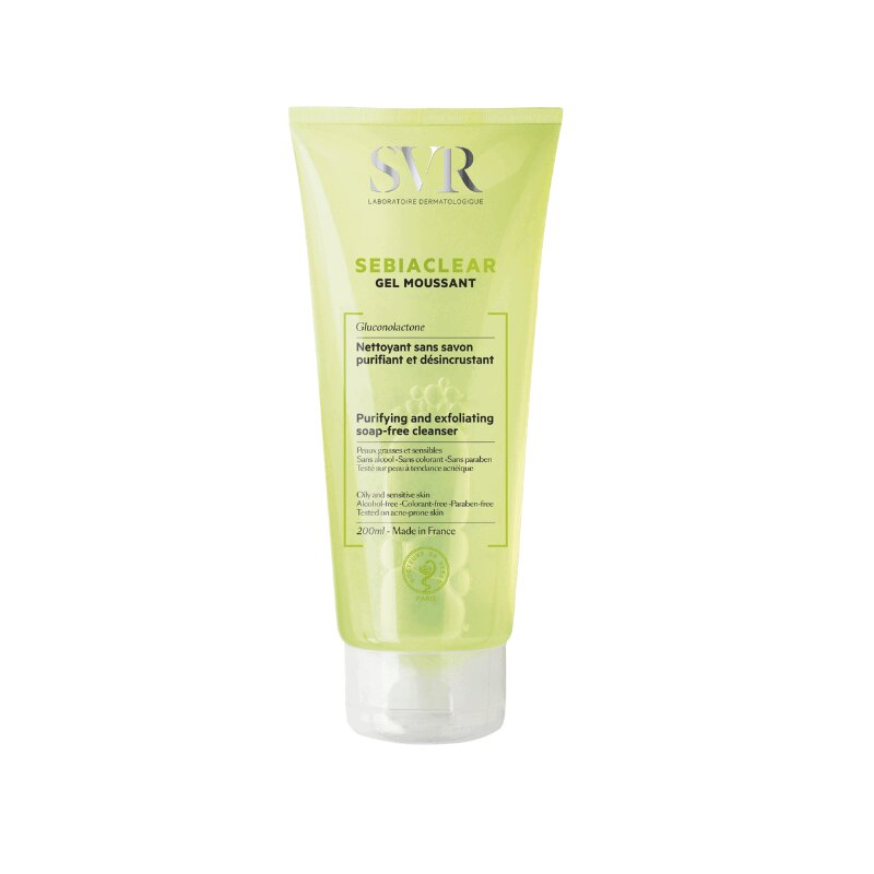 Гипоаллергенный мусс SVR Sebiaclear Gel Moussant не содержит мыла, поэтому бережно очищает кожу, не нарушая гидролипидную мантию. Оптимально подобранный состав помогает избавиться от угрей, акне, черных точек и ухаживает за кожей. Пенящийся Мусс SVR Себиаклир образует нежную сливочную пену, которая легко удаляет загрязнения, излишки себума и очищает поры. Средство легко смывается, оставляя кожу бархатистой и свежей. Активные компоненты: мягкая моющая основа очищает эпидермис, не вызывая сухости и раздражения, проявляет антибактериальные свойства; глюконолактон очищает поры, предупреждает появление акне; Mat SR (2%) регулирует выработку кожного сала, поддерживает матовость; глицерин смягчает, увлажняет и защищает эпидермис. Без спирта. без красителей без минеральных масел без мыла без парабенов гипоаллергенно некомедогенно СВР Себиаклир Мусс Пенящийся SVR Sebiaclear Gel Moussant, Артикул: 1004216 Пенящийся мусс образует нежную пену с легким ароматом.