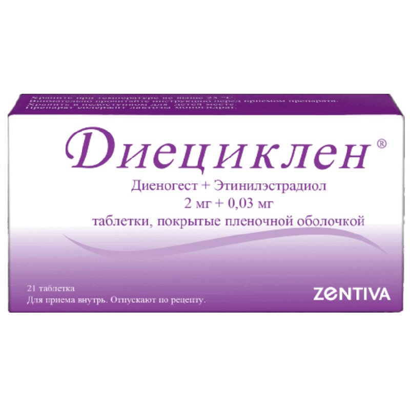 Диециклен 2 мг+0,03 мг таблетки покрытые пленочной оболочкой 21 шт