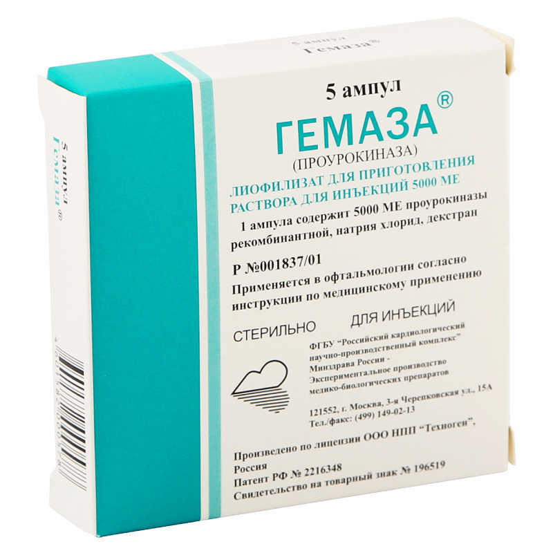 • Гемаза 5000 МЕ лиофилизат для приготовления раствора для инъекций 5 шт