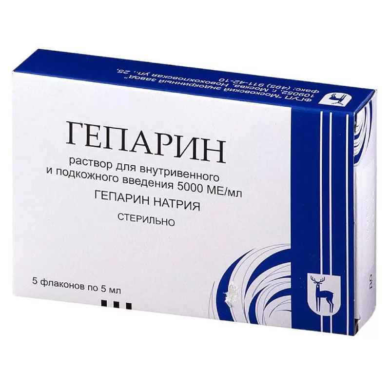 Гепарин 5000 МЕ/мл раствор для внутривенного и подкожного введения 5 мл 5 шт Московский эндокринный завод