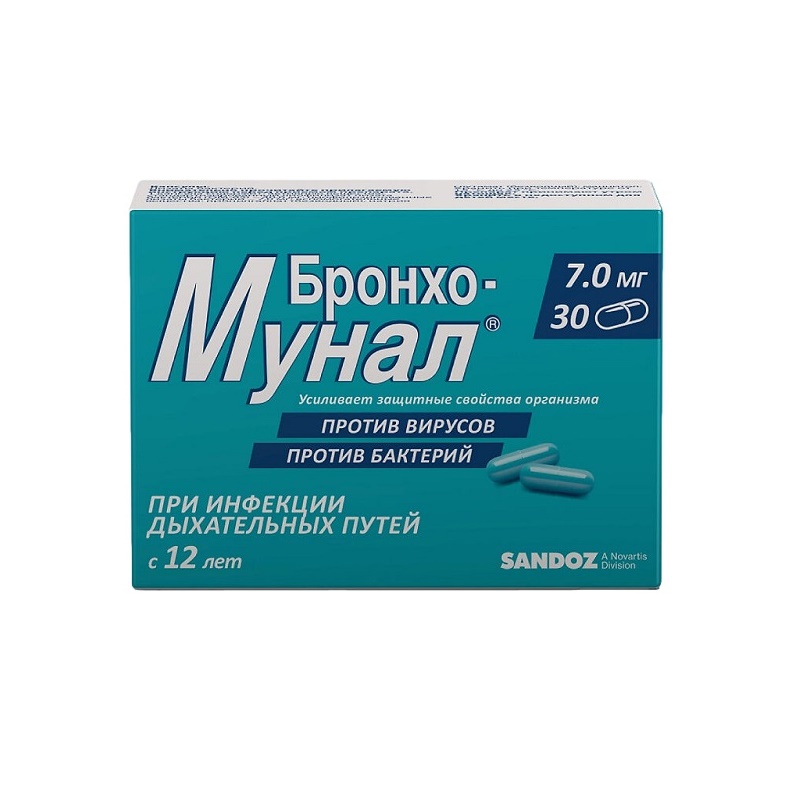 | лизаты бактерий Staphylococcus aureus, Streptococcus pyogenes, Streptococcus viridans, Streptococcus pneumoniae (следующих типов - TY1, TY2, TY3, TY5, TY8, TY47), Klebsiella pneumoniae, Klebsiella ozaenae, Haemophilus influenzae тип b, Neisseria catarrhalis | 7 мг |