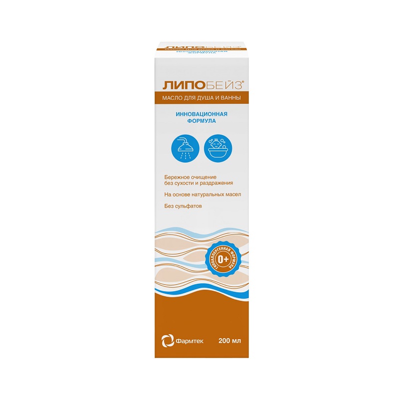 ЛИПОБЕЙЗ масло для душа и ванны обеспечивает гигиенический уход за кожей при любых состояниях, сопровождающихся сухостью, шелушением и раздражением. Также рекомендовано применение для профилактики подобных состояний. ЛИПОБЕЙЗ масло для душа и ванны подходит для младенцев, детей и взрослых. Рекомендовано для ежедневного использования.