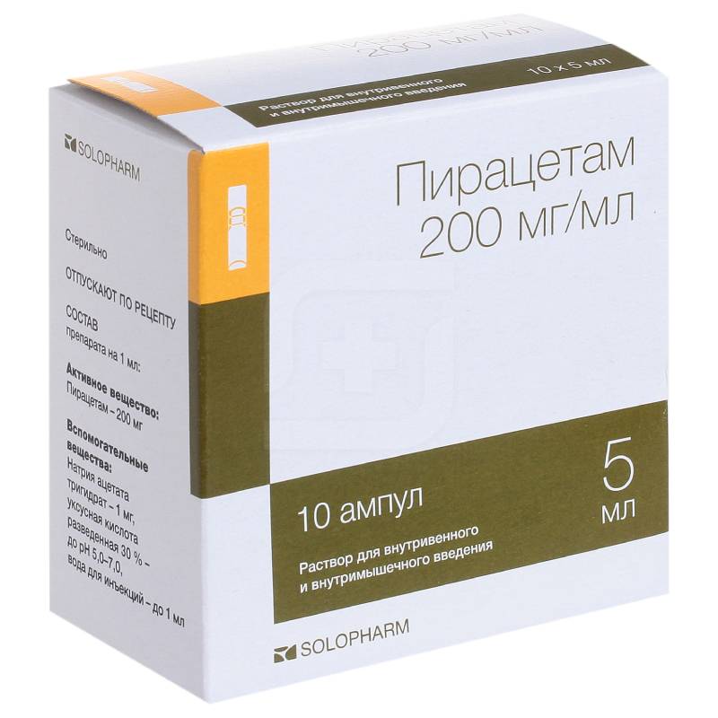 Пирацетам 200 мг/мл раствор для инъекций 5 мл 10 шт