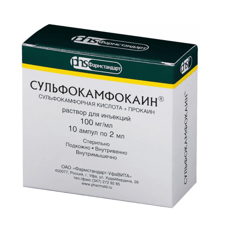 Инструкция по применению Сульфокамфокаин раствор для инъекций 2 мл 10 шт