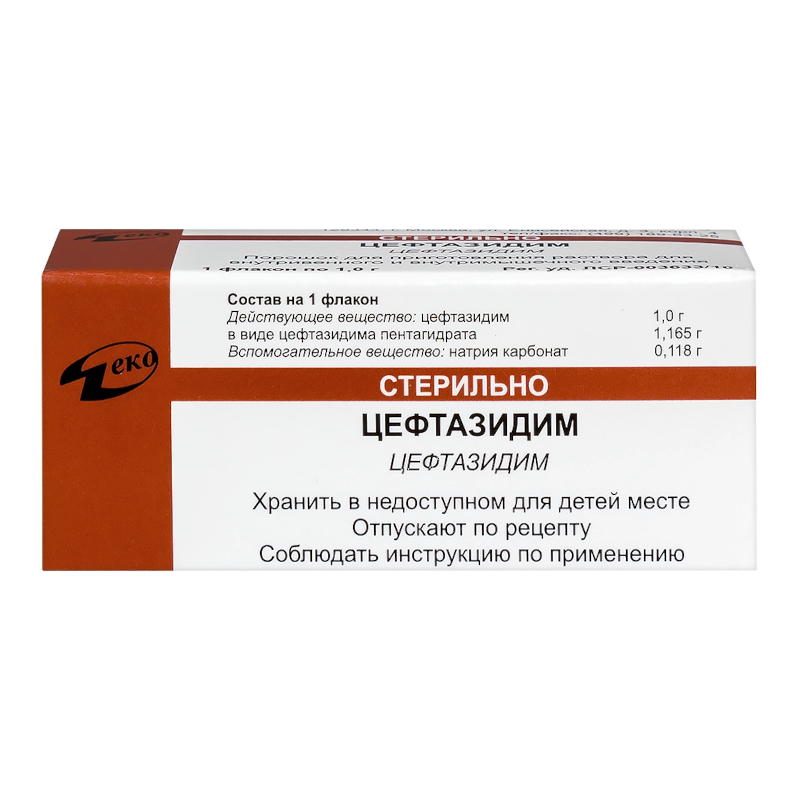 Цефтазидим 1 г порошок для приготовления раствора для внутривенного и внутримышечного введения 1 г 1 шт Деко