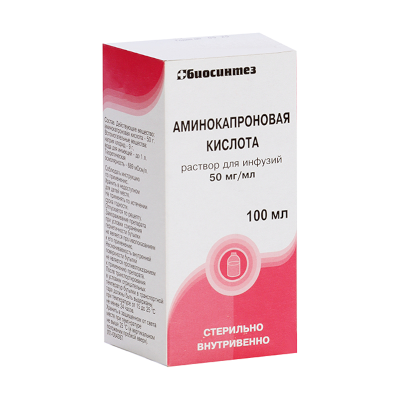 Инструкция по применению Аминокапроновая кислота 5% раствор для инфузий 100 мл