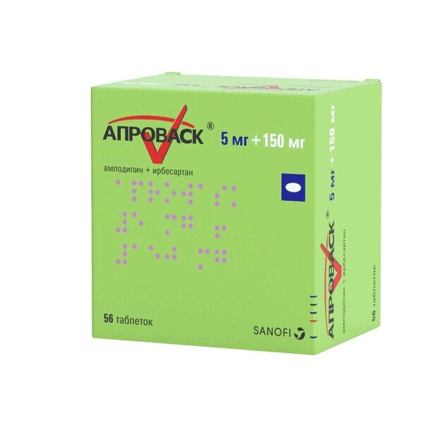 Фармакодинамические свойства каждого из действующих веществ, входящих в состав препарата Апроваск®, амлодипина и ирбесартана, способствуют их аддитивному антигипертензивному действию при применении в комбинации по сравнению с применением каждого из этих препаратов в отдельности. Как антагонисты рецепторов ангиотензина II (АРА II), так и блокаторы медленных кальциевых каналов (БМКК), снижают АД за счет снижения периферического сопротивления сосудов, однако блокада поступления кальция в клетку и уменьшение сосудосуживающего действия, обусловленного воздействием ангиотензина II, являются дополняющими друг друга механизмами.