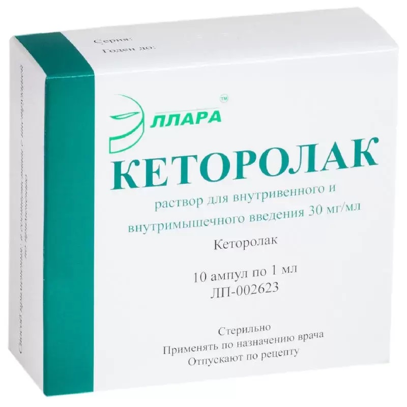 Кеторолак 30 мг/мл раствор для внутривенного и внутримышечного введения 1 мл 10 шт Эллара