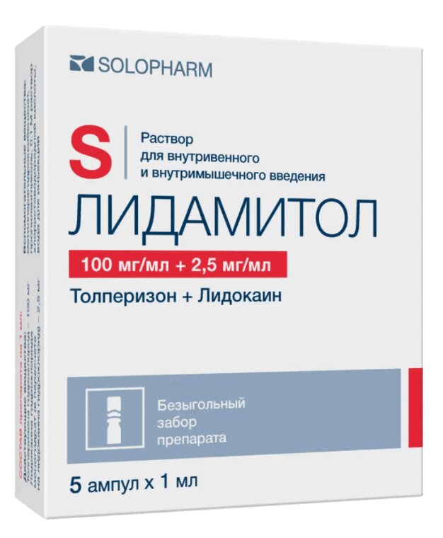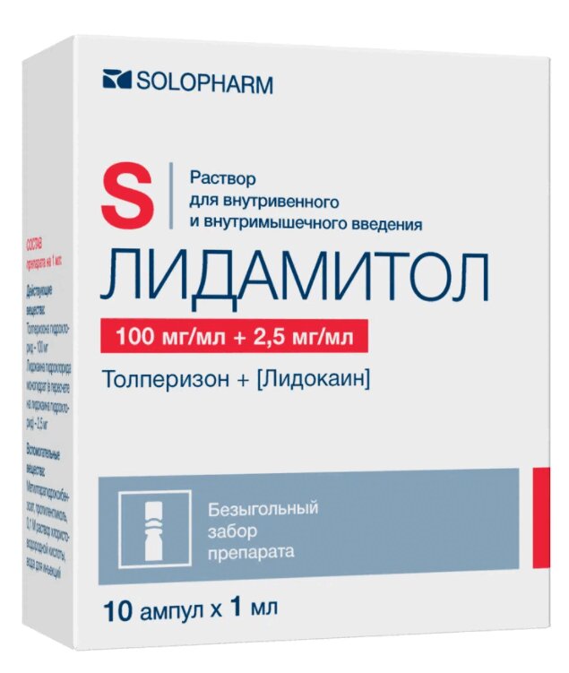 Лидамитол 100 мг/мл+2,5 мг/мл раствор для внутримышечного введения ампула 1 мл 10 шт
