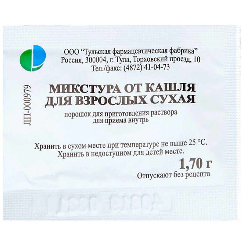 Инструкция по применению Микстура от кашля для взрослых сухая порошок для приготовления раствора 1,7 г 1 шт