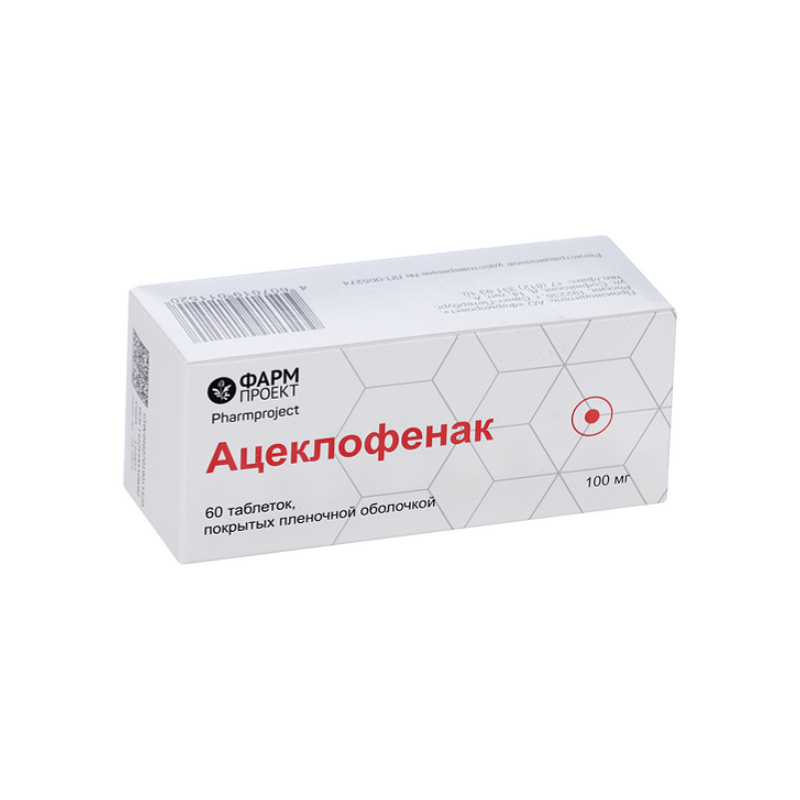 Ацеклофенак 100 мг таблетки покрытые пленочной оболочкой 60 шт Фармпроект