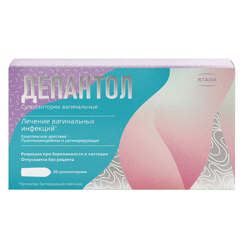 Депантол 100 мг+16 мг суппозитории вагинальные 20 шт
