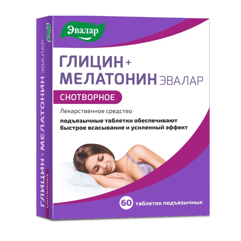 Глицин+Мелатонин Эвалар таблетки 100 мг+3 мг 60 шт