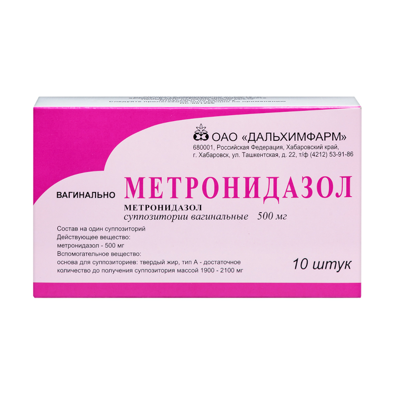 Метронидазол 500 мг суппозитории вагинальные 10 шт Дальхимфарм