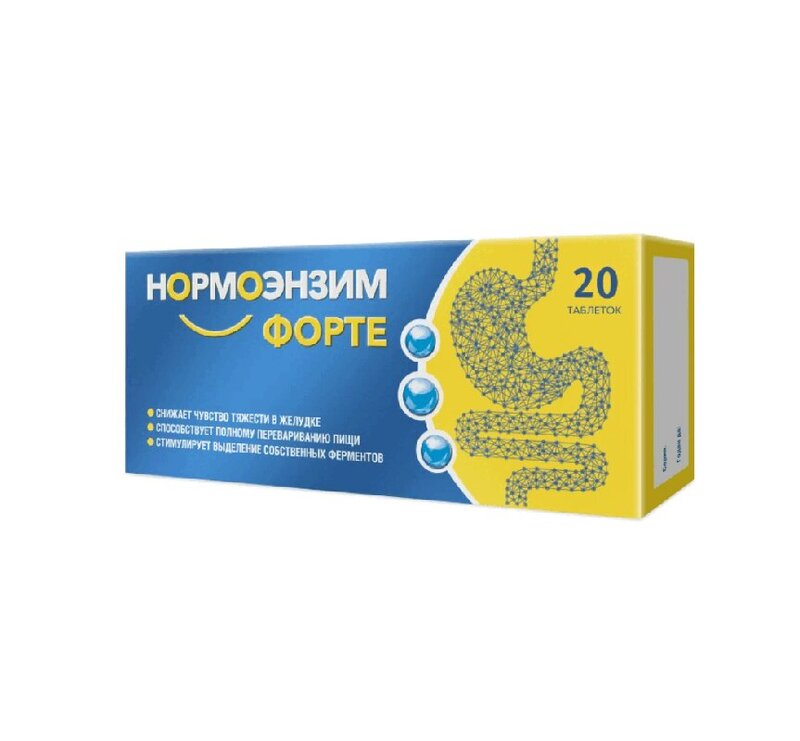 Нормоэнзим форте - комбинированный ферментный препарат, улучшающий пищеварение, действие которого обусловлено компонентами, входящими в его состав. Оказывает протеолитическое, амилолитическое и липолитическое действие. Имеет защитную оболочку, которая не растворяется до попадания в тонкий кишечник, что защищает ферменты от разрушающего действия желудочного сока. Препарат компенсирует недостаточность функции поджелудочной железы и желчевыделительной функции печени. Способствует быстрому и полному перевариванию пищи, устраняет симптомы, возникающие вследствие нарушения пищеварения (чувство тяжести и переполнения желудка, метеоризм, диарею). Улучшает процесс переваривания пищи у детей; стимулирует выделение собственных ферментов поджелудочной железы, желудка и тонкого кишечника, а также желчи.