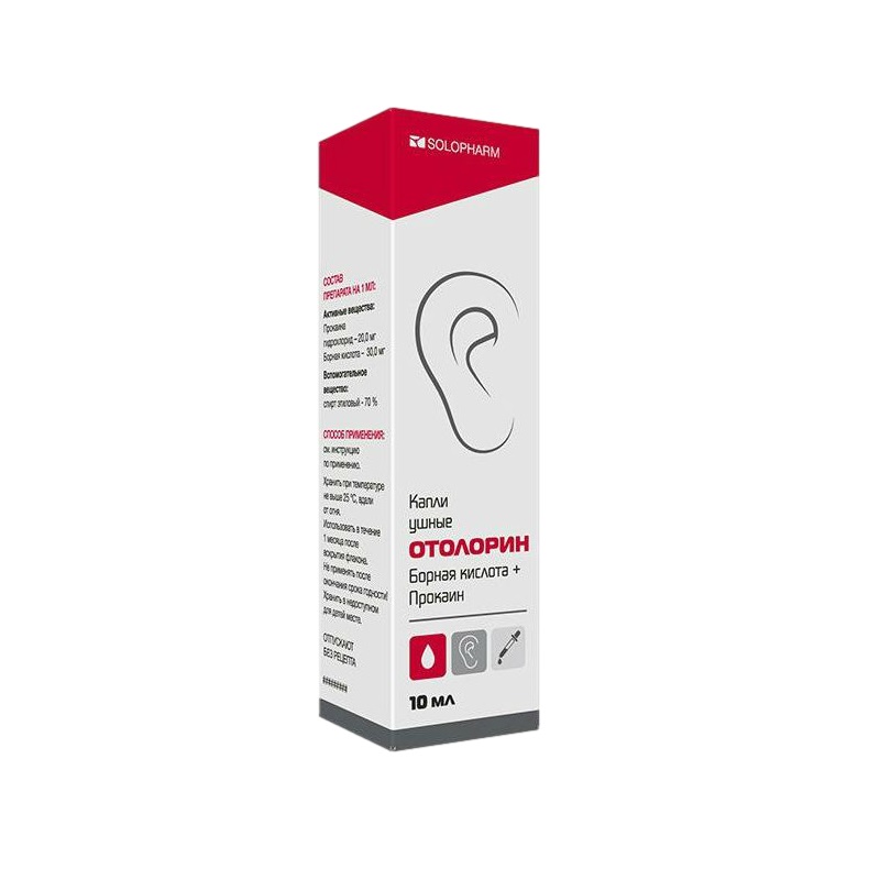 Отолорин 30 мг/мл+20 мг/мл капли ушные 10 мл