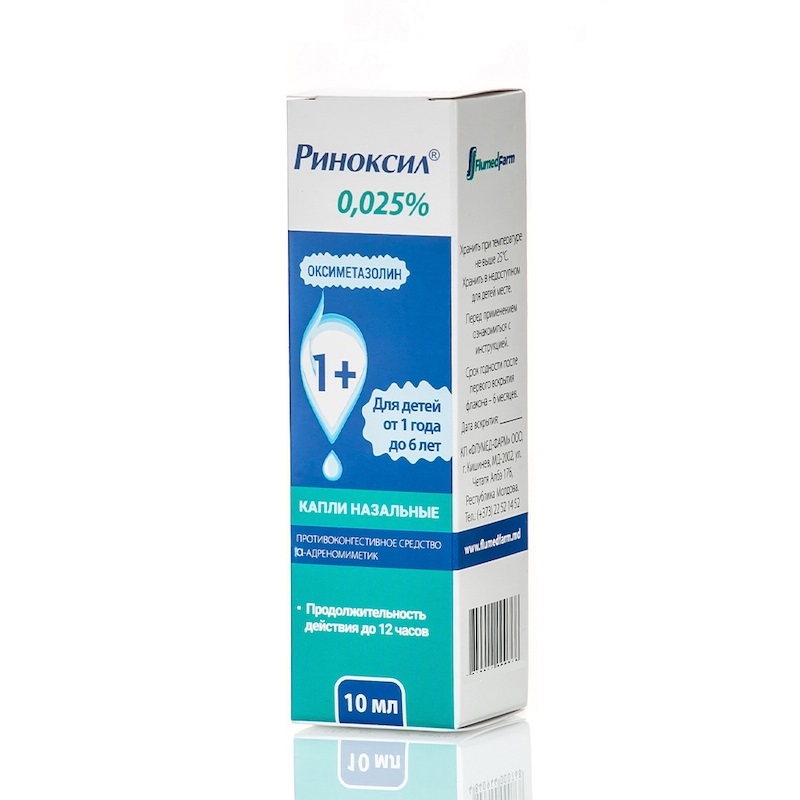 Инструкция по применению Риноксил Окси 0,025% капли назальные для детей 1-6 лет 10 мл