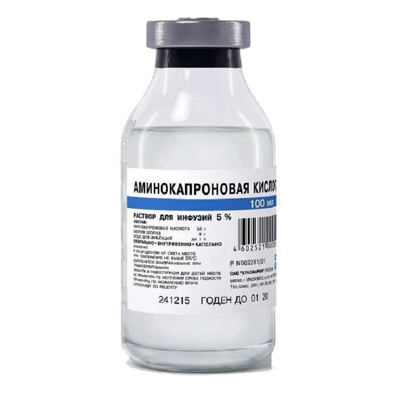 Инструкция по применению Аминокапроновая кислота 5% раствор для инфузий 100 мл