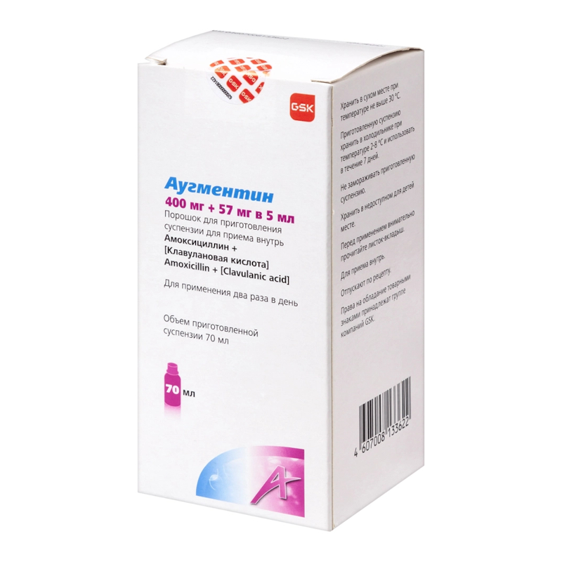 Инструкция по применению Амоксиклав 600 мг+42,9 мг/5 мл порошок для приготовления суспензии 100 мл