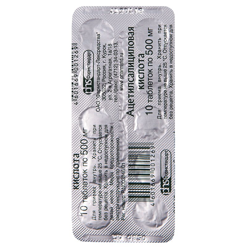 Ацетилсалициловая кислота 500 мг таблетки 10 шт Фармстандарт