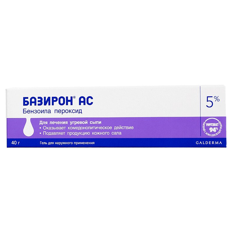 Инструкция по применению Базирон АС 5% гель для лечения угревой сыпи 40 г
