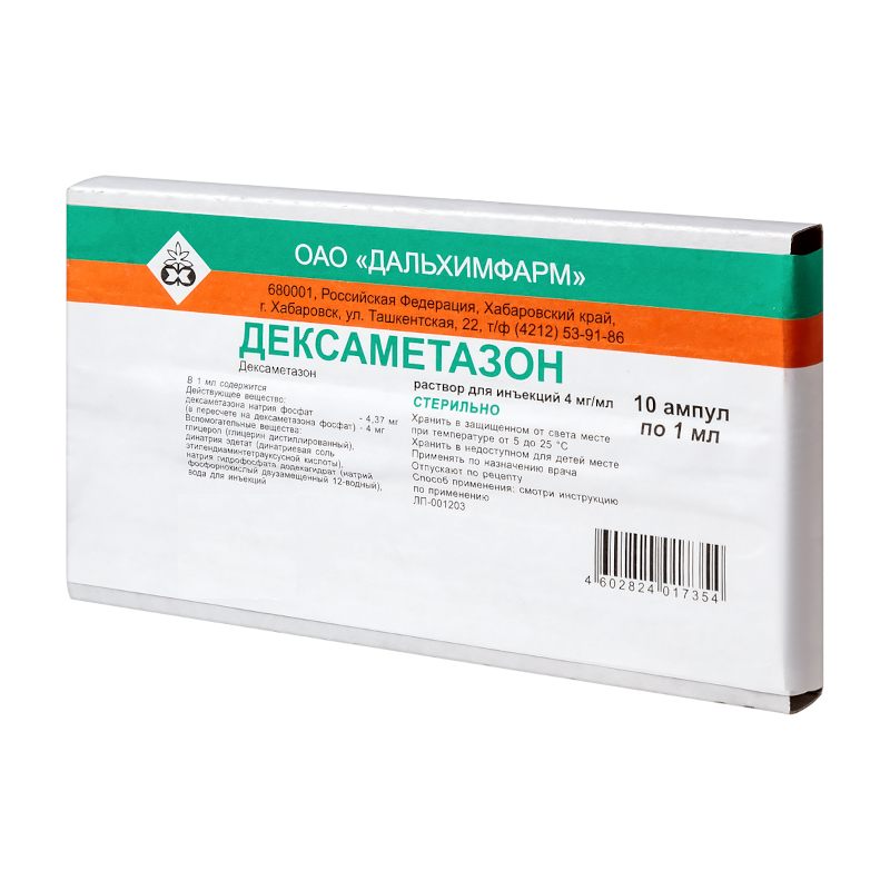 Дексаметазон 4 мг/мл раствор для инъекций 1 мл 10 шт Дальхимфарм
